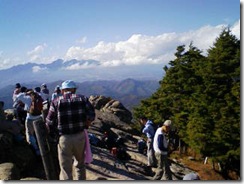 瓦礫の山道をひたすら登って、金峰山(きんぷさん)(標高2599メートル)に着いた。山頂の五丈岩はこの山のシンボルで、強く印象に残った山でした。五丈岩と書いてゴジョウセキと読むのだと言われたように思う。が、今回、ガイドにも聞いてみたのですが、ゴジョウセキとは呼ばず、文字通りゴジョウイワとのことだった。